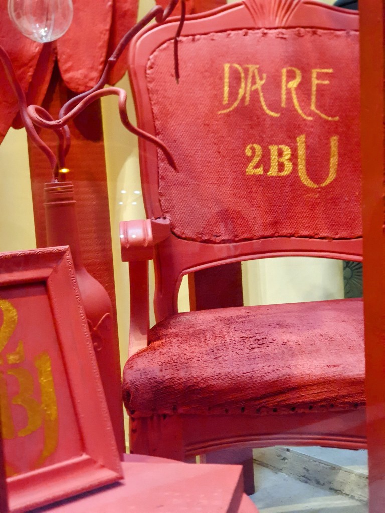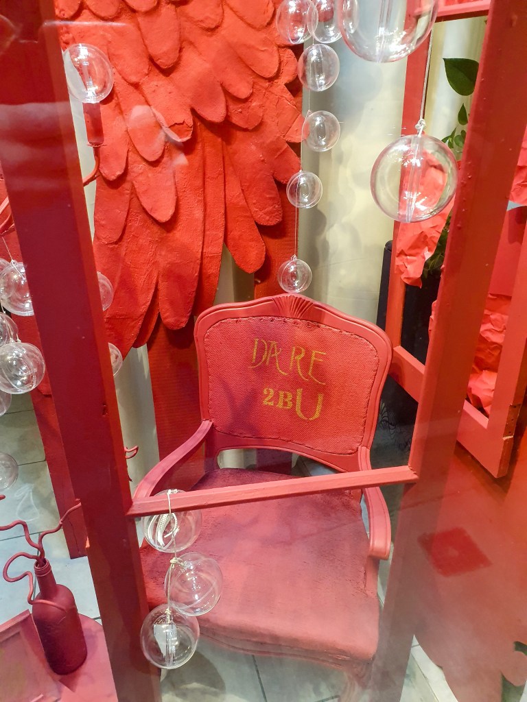 Our shop window is an original take of the nativity scene, done by using recycled materials and repurposed for the occasion. The colour chosen is pink, which is nothing in particular except that it is our favourite colour.